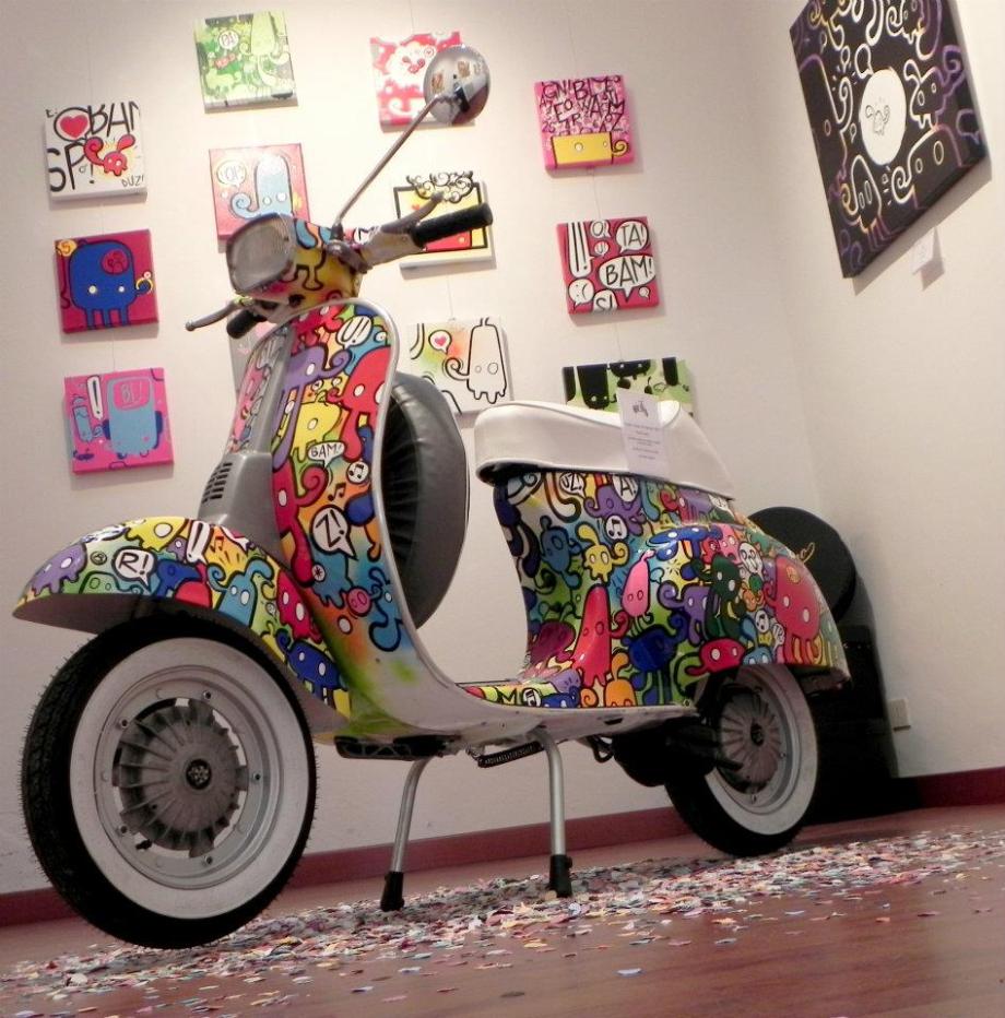 Ho deciso quindi di cominciare a utilizzare come base, oggetti di uso quotidiano, un po’ particolari magari o distinti per la loro storia, il loro scopo o per il loro design. Di conseguenza ecco la Vespa Special 50, simbolo del design italiano, di una intera generazione ma anche ricordo mio d’infanzia, sinonimo di libertà di movimento!