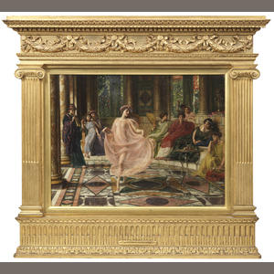 Il soggetto porta in vita un antico poema greco di Orazio. Al centro una giovane ragazza in abito trasparente, esiliata dalle isole Ionie, danza per la sua padrona romana, che è rappresentata in abito verde sdraiata sul divano. I ricchi dettagli del pavimento a mosaico mettono in luce l’abilità dell’artista che interpreta al meglio un soggetto molto di moda all’epoca (di recente scoperta erano infatti gli affreschi di Pompei).