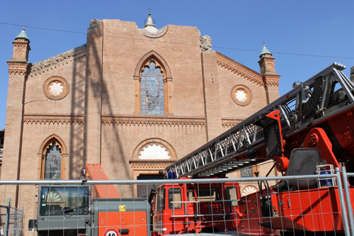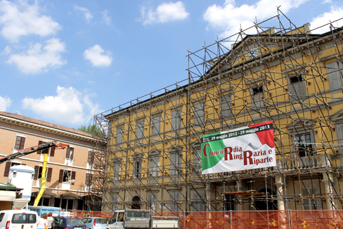 Funziona a pieno regime invece la “clinica dell’arte ferita” allestita al Palazzo Ducale di Sassuolo. Sono più di 1300 i beni mobili provenienti da raccolte pubbliche o edifici religiosi ricoverati nelle sale dedicate. Catalogazione e operazioni di primo soccorso da parte degli specialisti dell’Istituto per la Conservazione e il Restauro di Roma e l’Opificio delle Pietre Dure di Firenze. Nel frattempo prosegue il lavoro delle 823 squadre miste di architetti, ingegneri, storici dell’arte e restauratori inviate dal Ministero per i Beni e le Attività Culturali per le operazioni di sicurezza e salvaguardia del patrimonio (1 miliardo e 300 milioni di euro di danni per i beni delle 4 province emiliane coinvolte, 400 milioni per le sole chiese). Fondamentale il contributo dei Vigili del Fuoco ancora attivi e presenti sul posto. La maggior parte delle opere di risanamento porta indelebile il marchio del Corpo “V.V.F.” con relativa provincia di provenienza.