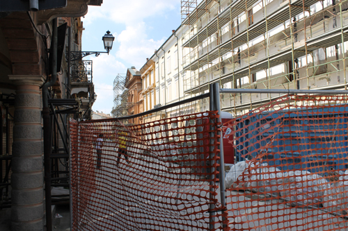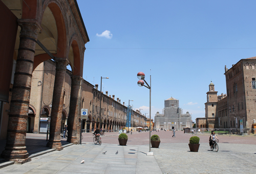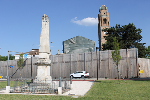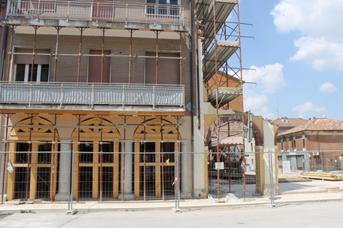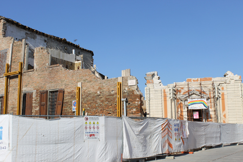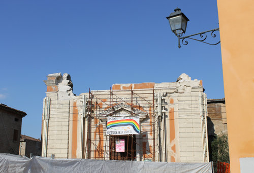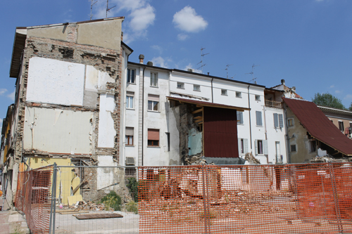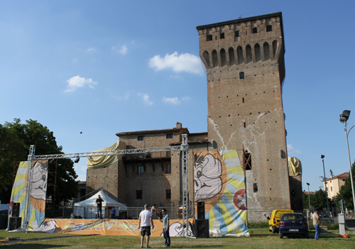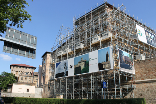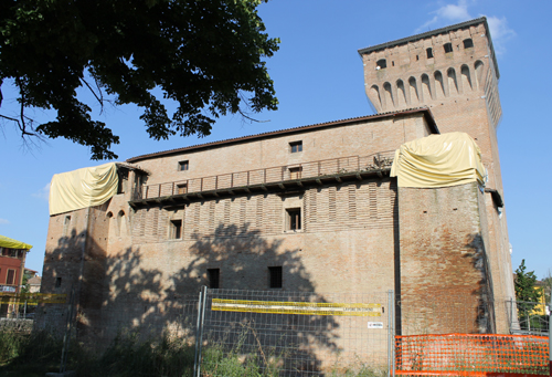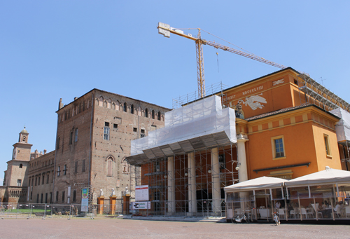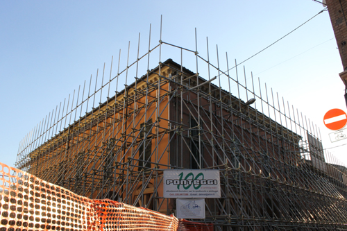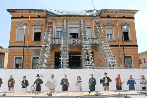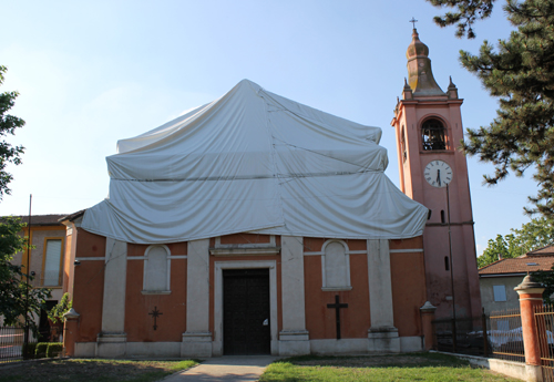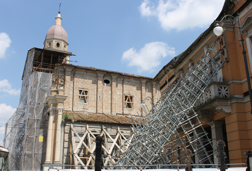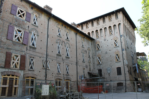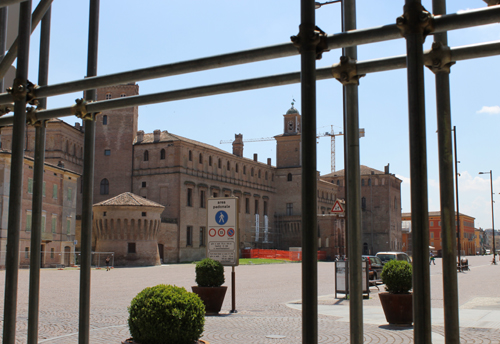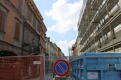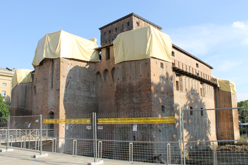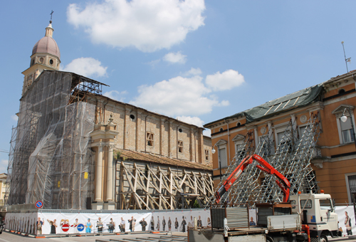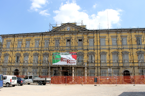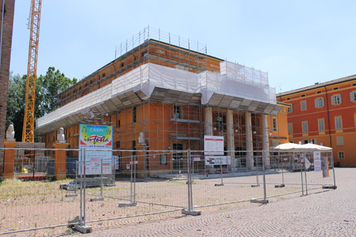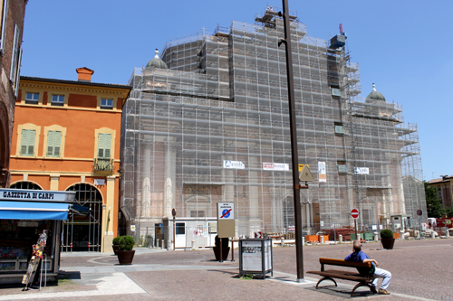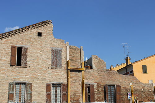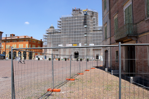 E poi i contenitori (artistici) delle opere d’arte: musei e pinacoteche, tutte o quasi “chiusi per restauro“. La Pinacoteca di Cento con i suoi Guercino è ancora interamente “ingabbiata” da ancoraggi e ponteggi come il Castello dei Pico a Mirandola sede del Museo Civico mirandolese “imbragato” per buona parte del perimetro murario.