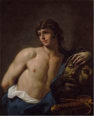 The head of the giant Goliath, the most fearsome warrior of the Philistine army, is placed triumphantly in the foreground to the right of David, the shepherd-boy of Judah who had accepted and won the challenge made to the Jews by Goliath himself. For David, a staff, a sling and five smooth stones were all that was needed for him to defeat Goliath, who was almost three metres tall, clad in a bronze helmet and armour with an enormous sword. David approached the Philistine and, using his sling, he hurled the first stone, knocking out his adversary while the second stone smashed into the giant’s forehead, and he slumped to the ground. The third stone shattered Goliath’s skull and, with his enemy’s own sword David cut off his head. In this work, unpublished until now, the finely chiselled sword is placed diagonally to draw in the observer, emphasising the size of the object which proved useless against the intelligence, cunning, courage and faith of the young shepherd from Bethlehem.