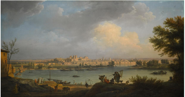Si tratta di un paesaggio che ritrae la città di Avignone, il suo luogo di nascita, un dipinto che lo storico dell’arte Giuliano Briganti nel 1970 aveva definito una delle più belle vedute. Realizzato nel 1756, il dipinto è stato esposto al Salon di Parigi del 1759, e nel tardo XVIII secolo è stato nelle mani di una serie di illustri collezionisti francesi, tra cui Pierre Louis Paul Randon de Boisset, Receveur général des Finances, e Ange-Joseph Aubert, Joallier de la Couronne.