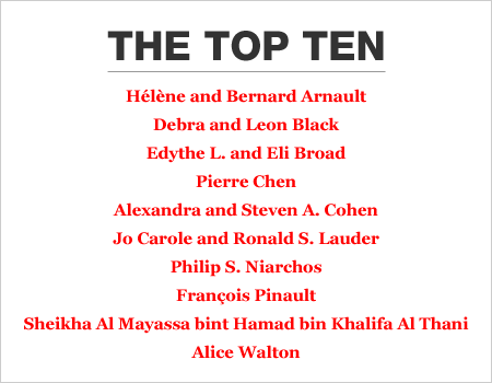 Per il 23° anno ARTnews stila la classica dei 200 collezionisti più attivi dell’anno. Il 2013 ha visto buyers provenienti da Russia, Brasile, Cina, Giappone, Inghilterra, Canada, Paesi Bassi, Finlandia e Stati Uniti con 17 nuovi nomi e 1 tra i top ten.