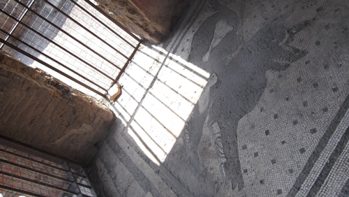 “CAVE CANEM!” – “Attenti al cane”: Se fino al 79 d.C. metteva in guardia chiunque volesse violare la privacy del poeta-padrone ora – 2013 d.C. – significa sempre la stessa cosa ma con una sfumatura differente: “Attenti al cane! (RANDAGIO)“. Di cartelli riguardo i randagi sperduti e smagriti (degni dell’opera di Velasco Vitali) ce ne sono ovunque. Chiediamo spiegazioni. Una guida (non abusiva) ci avvisa sul fatto che “potrebbero avere la rabbia” e comunque nel migliore dei casi “fate attenzione che morsicano e non è piacevole”, quindi bisogna stare attenti e girare al largo. Un custode invece ci spiega che è “terra loro”, “qua sono a casa ed è normale che trovino rifugio in giro”: li avvistiamo nelle Terme Stabiane (i più antichi bagni pubblici pompeiani) – proprio accanto al frigidarium (con frotte di turisti attoniti che ci passano accanto), nel lupanare – uno dei 25 bordelli della città – a fianco ai letti dove si consumavano le prestazioni 2 mila anni fa ma anche, molto più semplicemente, sdraiati in qualche fresca e isolata domus e presso le fontanelle disseminate agli incroci delle vie per dissetarsi. Come non comprenderli, ci son 40 gradi e hanno caldo anche loro.
