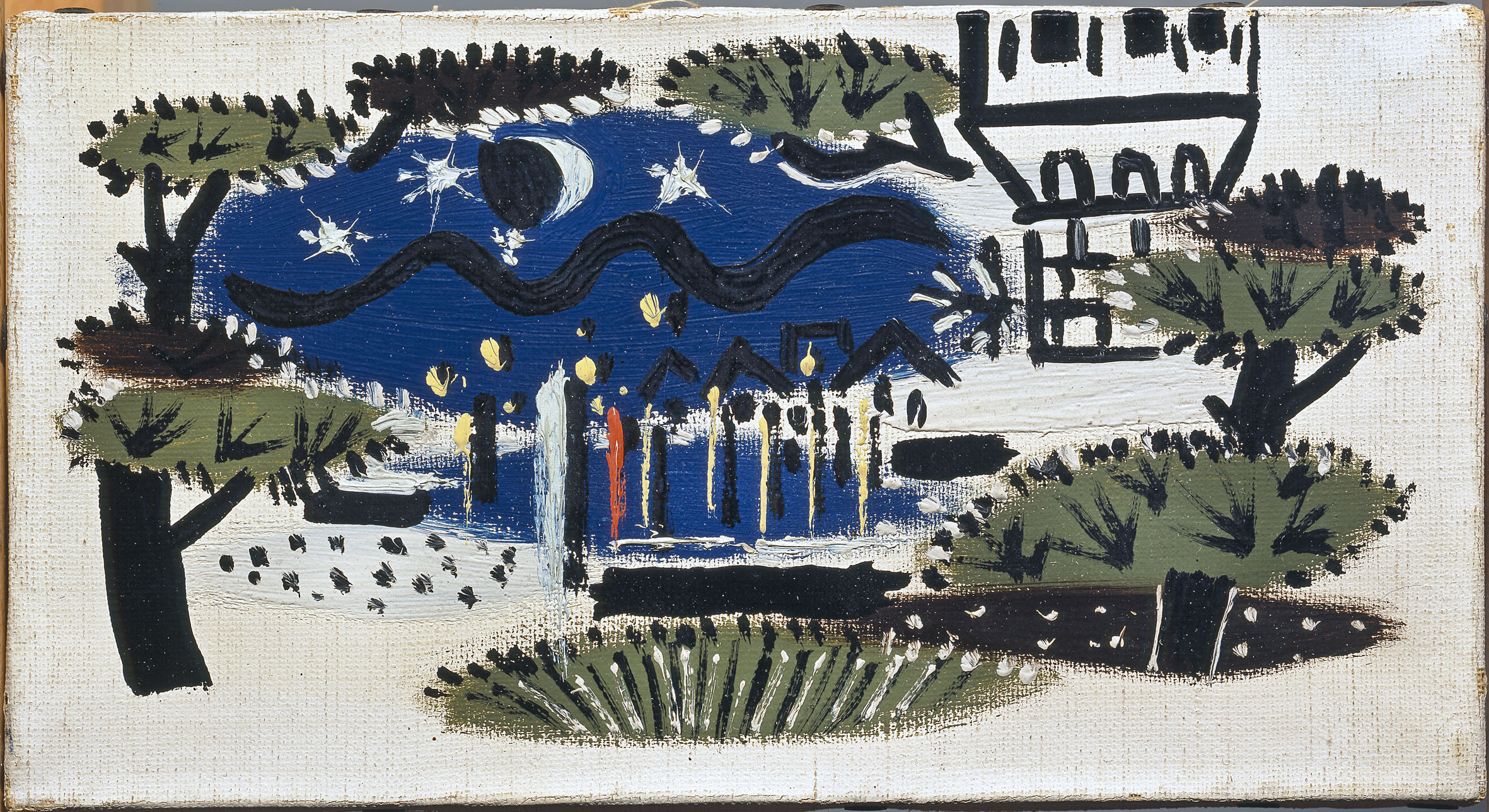 L’anno successivo, il 1924, affitta la villa La Vigie, che domina la baia di Juan-les- Pins. C’è anche un garage: ecco dove dare sfogo alla sua irruenza artistica. E l’irruenza è tale che, unita alla poca lungimiranza del padrone di casa che intende ripulire tutto a fine stagione, al pittore tocca pagare i danni per quei muri tutti imbrattati. E poi ancora un’estate a Juan-les-Pins nel1925 aVilla Belle Rosa e l’anno successivo a Villa la Haie Blanche. E poi altre estati ancora, delle quali la mostra riesce a produrre sempre almeno un’opera, o qualche disegno, e alcune fotografie sbiadite in bianco e nero, o tinta seppia, di grande suggestione.