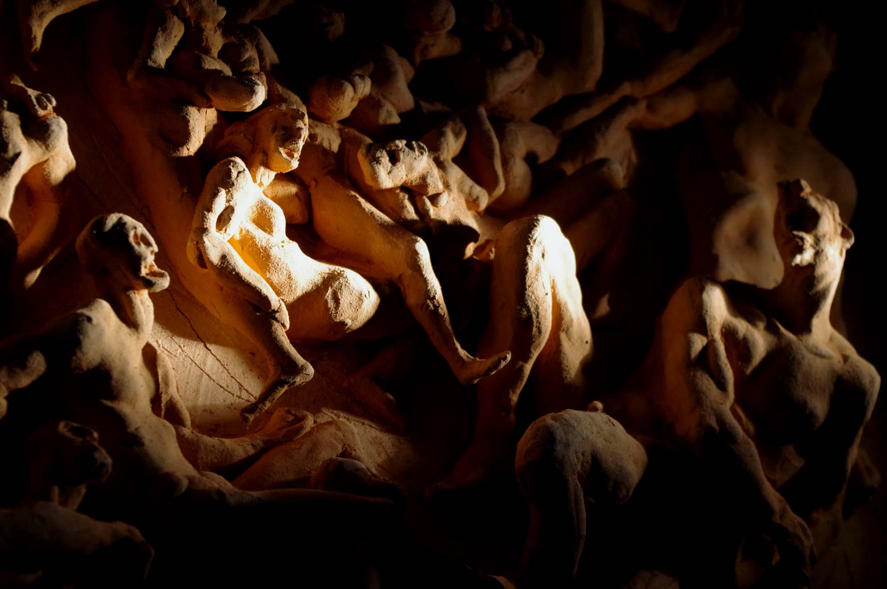 Il titolo, infatti, si riferisce al fatto che la scultura rappresenta per l’artista un modo di incanalare idee, energie e sensazioni che se non trovassero una via d’espressione potrebbero soverchiarlo. Modellare, scolpire diventa dunque una necessità, un desiderio profondo di ritorno alla terra, ai suoi riti e ai suoi tempi.