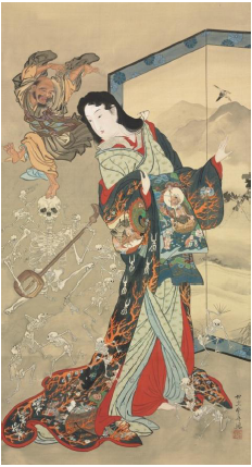 In catalogo un preziosissimo capolavoro giapponese dal titolo Jigoku dayu (Hell Courtesan), realizzato dall’artista Kawanabe Kyosai (1831-1889). L’opera, appena ritrovata in un cassetto dopo mezzo secolo circa in cui non vi erano sue tracce, è in ottimo stato ed vanta una stima di £300,000-500,000. Non vi erano notizie di Jiguku dayu dal 1942 quando è stata venduta ad un’asta a Copenaghen e dell’opera si conservava solo una foto in bianco e nero. Questo dipinto fa parte di un gruppo di sei opere venduto a quell’asta – tra cui Two crows on a branch above Asakusa at down (Due corvi su un ramo sopra Asakusa all’alba), stimato £50,000-70,000 – di proprietà dell’architetto britannico Josiah Conder(1852-1920), andato in Giappone nel 1877 per la modernizzazione di Meiji. Egli ha insegnato architettura e urbanistica a quella che sarebbe diventata l’Università di Tokyo, ha lavorato per il Ministero di Ingegneria e ha sempre avuto un rapporto speciale con Kyosai, l’artista autore del dipinto. In seguito la figlia di Conder ha sposato un danese, e qui si spiega perché questi dipinti giapponesi sono finiti all’asta a Copenaghen nel 1942.
