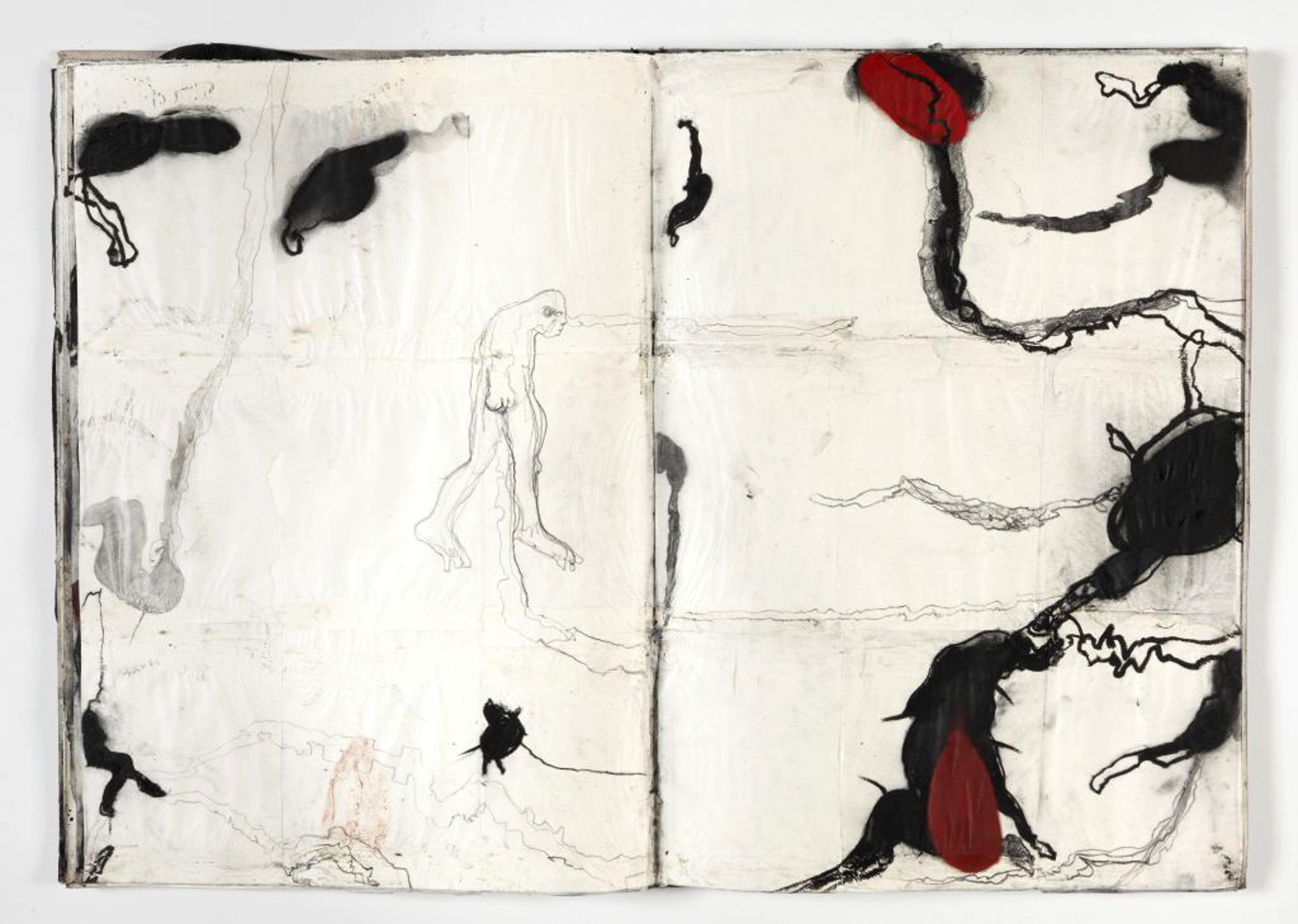 La macchia umana di Philip Roth* è forza oscura, pulsione animale, inevitabilità genetica che non accetta fantasie di redenzione, e come tale è intrinseca, inerente, qualificante, esistente senza il segno o meglio prima del segno. Anche le macchie umane di Alessandro Verdi all’inizio precedono il segno, macchie Rorschach profonde e essenziali, non meno ancestrali e primordiali dell’altra, che emergono dall’inconscio nel paesaggio incontaminato della tela, dove salgono, scendono, si sciolgono, si protendono, si dividono, si moltiplicano e soprattutto si evolvono, prima di accogliere con purezza il segno e saldarsi a esso in embrioni, blastule, corpi, membra, forme, sembianti o negazioni di sembianti. Come la macchia di Roth, sono fatali ma «senza tristezza», ché anzi a volte stillano ironia e grazia quando si sdoppiano e rispecchiano, simili a cellule nelle cellule della tela, e sempre trasudano feroce vitalità, anche quando si codificano entro i confini di quaderni sfaldati in rosso, ricompattati in nero o impastati nei mattoni di un’attesa, benché sofferta, civiltà.