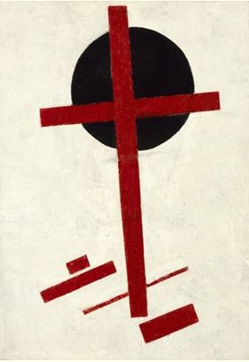 Del radicalismo dell’artista poco si vede nelle prime sale della mostra: gli inizi della sua carriera sono infatti totalmente popolati da paesagi impressionistici nello stile di Monet e Pissarro, Matisse e Cezanne. Ma a partire dal 1915 le cose cambiano radicalmente: il 19 dicembre apre in San Pietroburgo la mostra “0,10” che capovolge totalmente il concetto di arte. In quell’esposizione Malevich presenta 39 lavori completamente astratti, e assemblati in una maniera che noi definiremo ora istallazione e sopra tutti, proprio nell’angolo tra le due pareti, dove nelle case ortodosse russe viene appesa l’icona più bella, Malevich appende il suo Quadrato Nero. Nasce una nuova corrente che il pittore battezza suprematismo: un’arte di sola forma e colore. Lo Stedelijk Museum (che è gia in possesso di 6 quadri dell’allora mostra “0,10”) è riuscito ad ottenerne altri e ha ricostruito perfettamente questa famosa “installazione” grazie anche ai prestiti del MoMA di New York e del Centre Pompidou di Parigi. E naturalmente anche il Quadrato Nero (anche se in una copia del 1929) è arrivato dalla Russia e campeggia fiero nella sala tra croci rosse e nere.