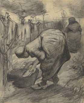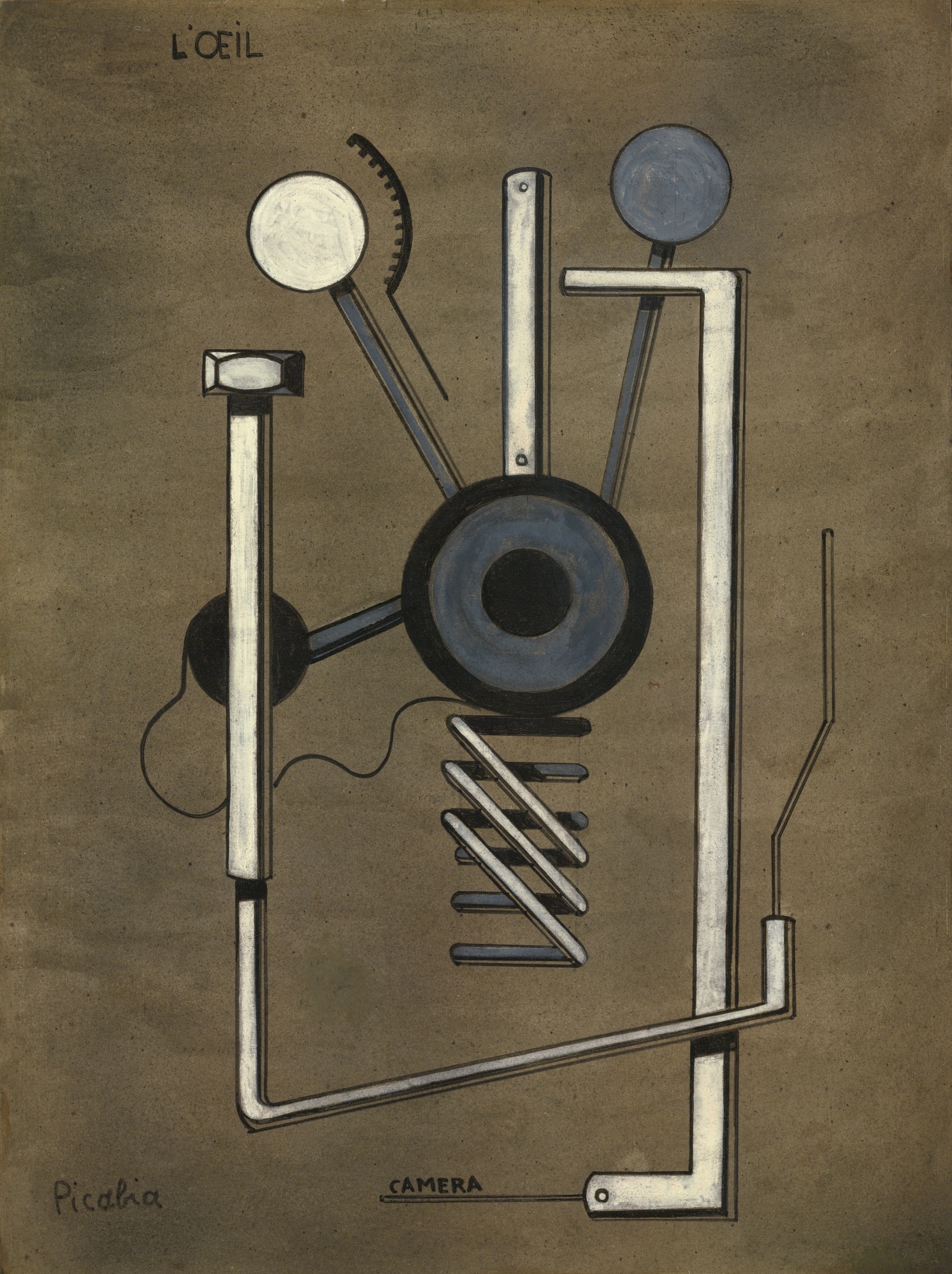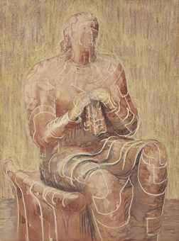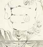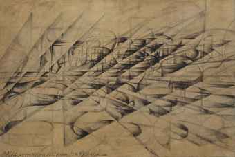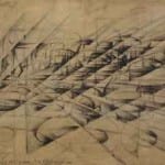 black crayon, pen, brush and black and sepia ink and pencil on paper