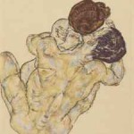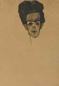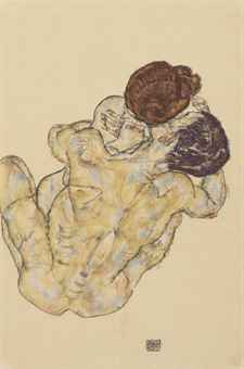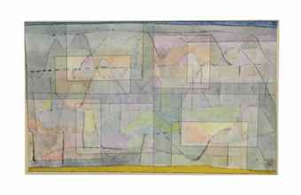 watercolor, black chalk, colored wax crayons and pencil on paper