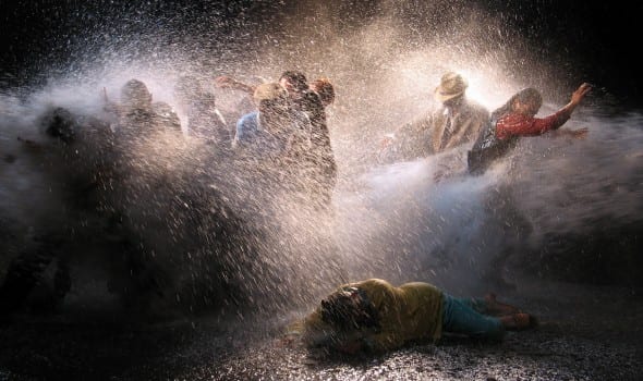 Dopo l’installazione di Fabrizio Plessi realizzata nella Sala dei Giganti, che ha inaugurato il ciclo, l’artista americano occuperà dal 23 novembre 2013 al 20 febbraio 2014 le sale napoleoniche con l’opera dal titolo The Raft, un video della durata di circa 10 minuti che racconta, con un’inquadratura fissa e immagini rallentate, la caduta e la resistenza di un gruppo di 19 persone in abiti dei nostri giorni mentre vengono investite da un violento getto d’acqua.