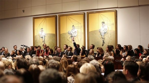 Il trittico di Francis Bacon “Three Studies Of Lucian Freud”, del 1969 è diventato l’opera d’arte più costosa mai venduta in asta. Era presentato con stima a richiesta ed è stato aggiudicato dalla galleria newyorkese Acquavella a $142,405,000 (£89,715,150 /€105,379,700) realizzando nuovo record d’asta per qualsiasi opera d’arte, spodestando così Edvard Munch, il cui Urlo era stato battuto all’asta a New York per 119,9 milioni di dollari e fino ad ora era stata l’opera d’arte più costosa mai aggiudicata nel corso di una vendita all’asta.