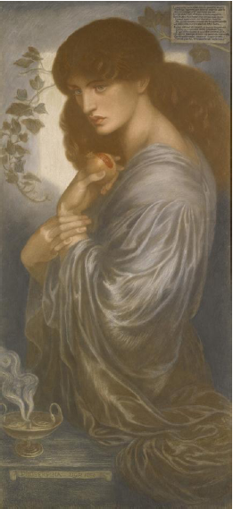 Iniziata nel 1878, questa “Proserpina” è considerata la versione migliore tra tutte quelle realizzate e la più rappresentativa dell’identità di Dante Gabriel Rossetti nel periodo della sua maturità artistica, nonché emblema di femminilità e simbolo di bellezza trascendentale.