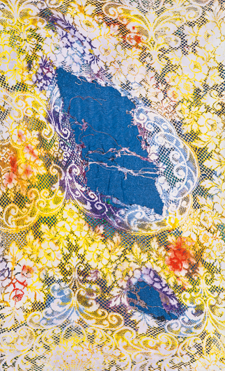 canvas, dye, oil, aluminium foil, wood