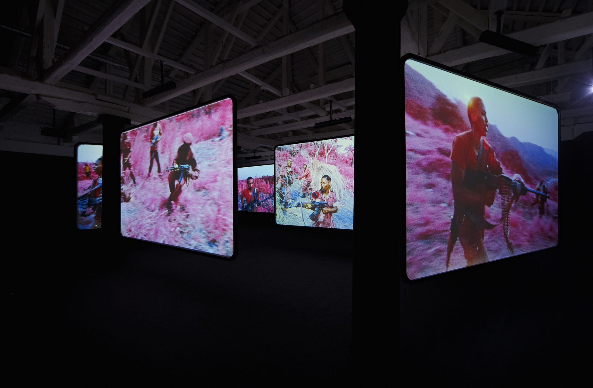 Terrificante e di forte impatto è la videoinstallazione a sei canali di Richard Mosse (Irlanda 1980), Enclave, presentata già alla Biennale di Venezia. Rappresenta le atrocità della guerra civile in Congo: lo spettatore è tuffato in una realtà allucinata attraverso il flusso continuo di video su sei schermi. Anche il medium rimanda alla guerra: Mosse ha utilizzato la pellicola Aerochrome, tecnologia a raggi infrarossi per scopi militari, che trasforma il colore verde degli alberi in rosa. La componente sonora, curata dal compositore Ben Frost, contribuisce al forte impatto emotivo dello spettatore che si trova all’improvviso immerso in un territorio (Africa) di guerra, come in Apocalypse Now.