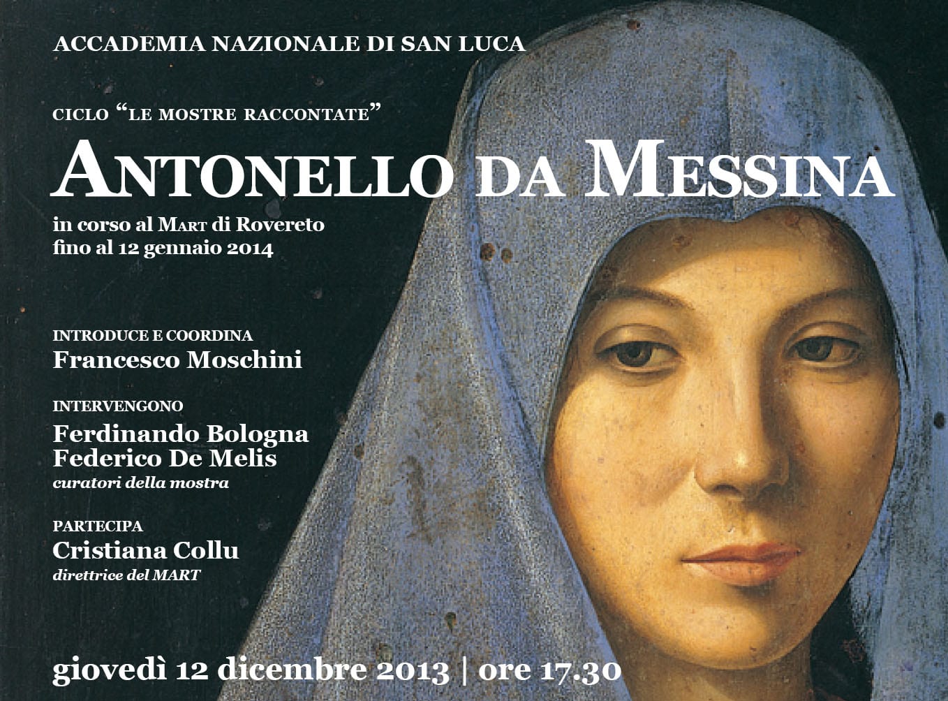 Giovedì 12 dicembre 2013, alle ore 17.30, Ferdinando Bologna e Federico De Melis, con Cristiana Collu, attraverso parole e immagini raccontano la mostra “Antonello da Messina”, in corso al MART di Rovereto fino al 12 gennaio 2014.