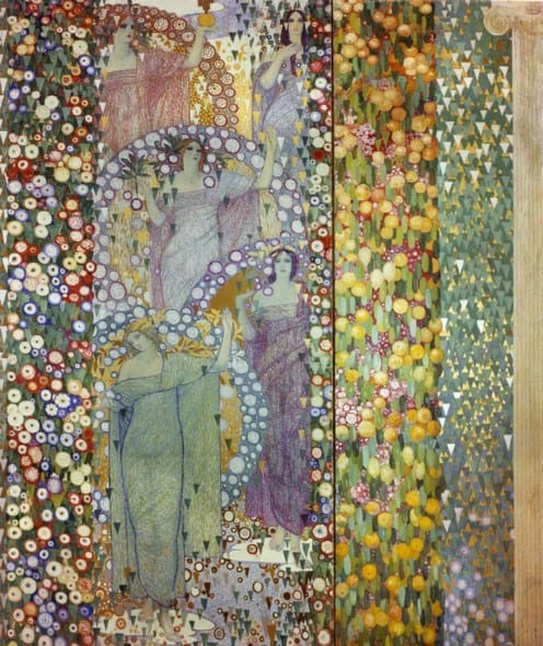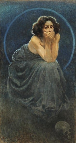 Analogamente, quel sogno voleva far rivivere l’antico splendore culturale, rideclinando con una sensibilità tutta attuale, definita dall’Estetismo e dall’eredità dei Preraffaelliti inglesi, un Rinascimento identificato tra la linearità sentimentale e femminile di Botticelli e la tensione eroica di Michelangelo. È per questo che la mostra intende identificare, per la prima volta rispetto alle diverse rassegne dedicate nel passato al Liberty, le specificità di uno stile attraverso una serie di capolavori della pittura e della scultura, che, seppur di artisti di formazione, poetica e linguaggio diversi, come Segantini, Previati, Boldini, Sartorio, De Carolis, Longoni, Morbelli, Nomellini, Kienerk, Chini, Casorati, Zecchin, Bistolfi, Canonica, Trentacoste, Andreotti, Baccarini rivelano contenuti e messaggi comuni, con i quali sono scandite le sezioni dedicate al mito, all’allegoria, al paesaggio declinato tra tensioni simboliste e una ricerca dell’assoluto che ci farà incantare davanti ai dipinti dedicati alla rappresentazione dei ghiacciai, visti come l’immagine della “montagna incantata” di Thomas Mann.