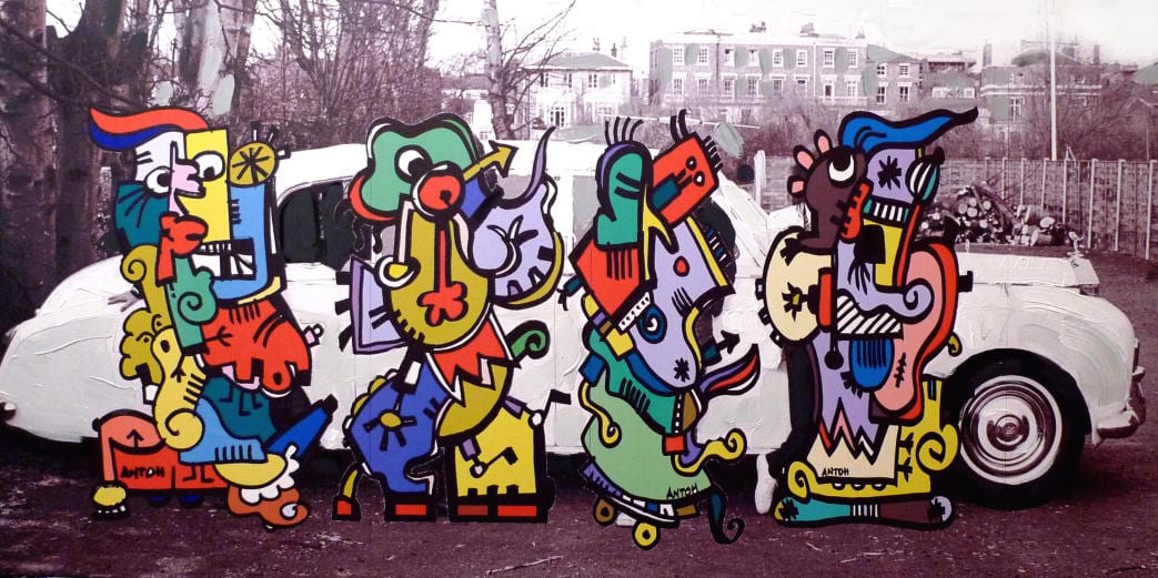 Richiami al cubismo, al surrealismo, alla pop art e al graffitismo, ma anche richiami a simboli mass-mediatici di derivazione fumettistica, si compongiono in un universo di personaggi astratti che l’artista chiama “Universo H”. Piaccia o non piaccia, una specie di Antohland.