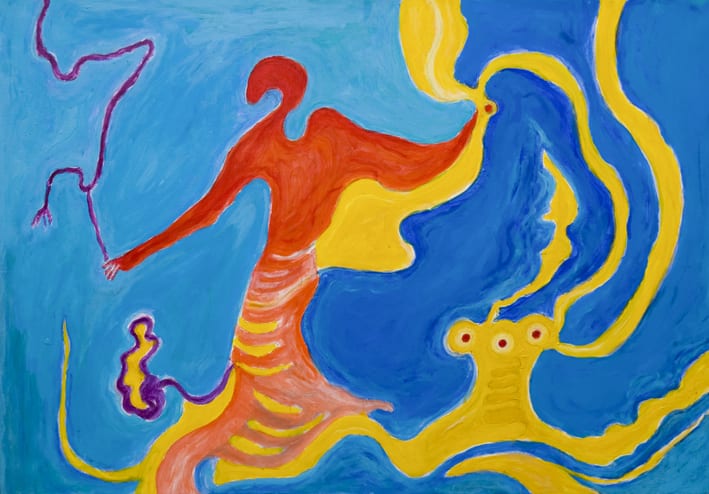 Anche nei recentissimi acrilici su tela (Circonvoluzione, 2011; Strega marina, 2012; Letargo, 2013) riappare lo stesso mondo immaginario di Dorfles, popolato da forme pure e primitive derivate da un repertorio già delineato nel passato. Nuovi esseri poliformi, a metà tra mondo animale, umano e vegetale, riemergono in un perenne processo di evoluzione. La linea rimane protagonista assoluta degli inverosimili percorsi dettati solo dalla fantasia, dunque dalla natura interiore dell’artista a ulteriore conferma che quella di Dorfles è una pittura libera e istintiva e che, come tale, incuriosisce e sorprende.