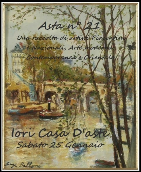 Prosegue la promozione dell’arte piacentina, che sarà protagonista dell’ asta in programma per il prossimo 25 di gennaio dalla Iori Casa d’Aste (Piacenza) che propone opere provenienti da importanti collezioni private in alcuni casi mai ammirate dal pubblico, che racchiudono capolavori di maestri locali, nazionali e internazionali.