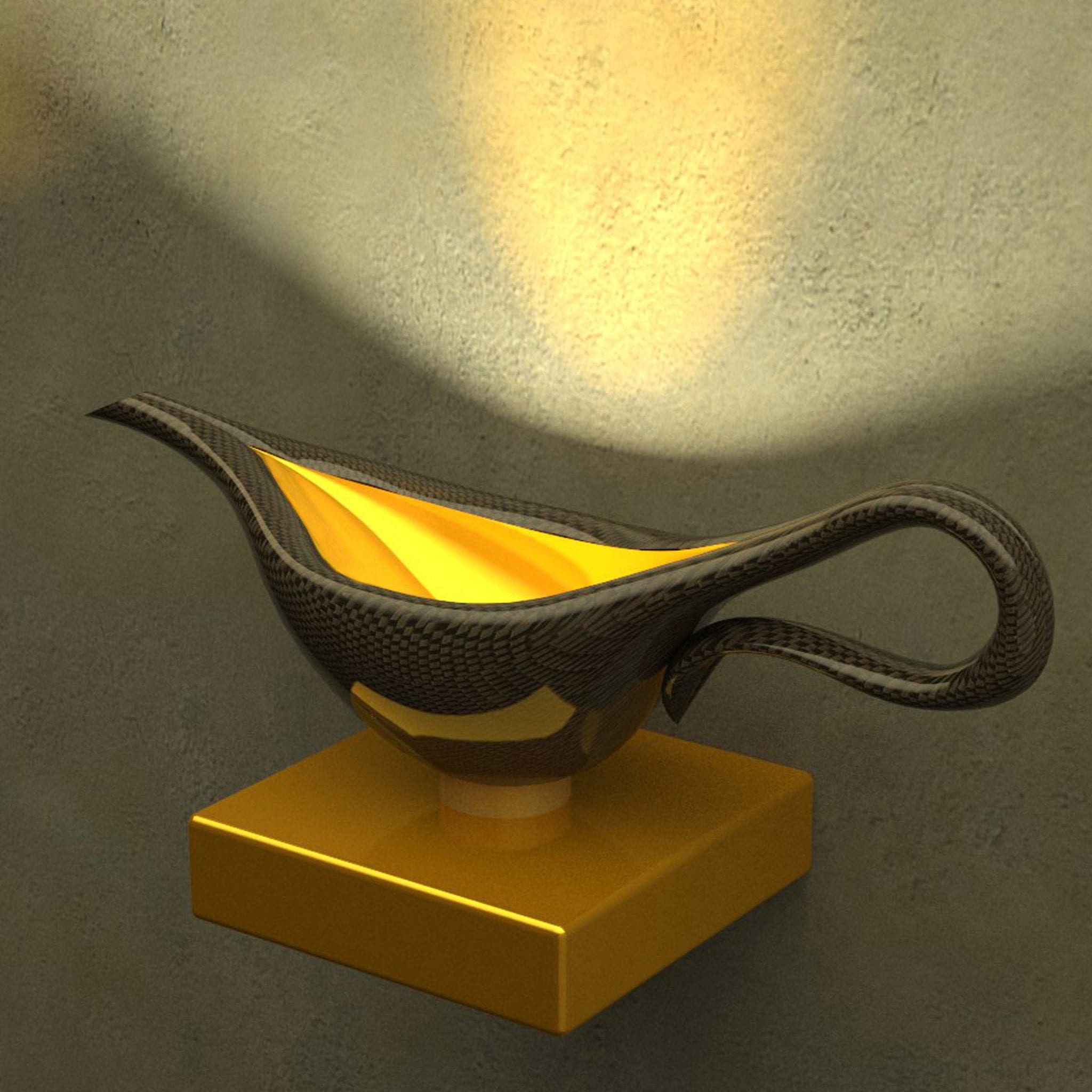 Una fantastica promozione riservata a tutti gli amici del design: la lampada DeSidera, di colore nero, dovuto alla Fibra di Carbonio, e dorata, con l’utilizzo della Foglia d’Oro, regala una luce di suggestione tra sogno e realtà, che richiama le intense atmosfere esotiche ispirate alla lampada di Aladino. Sarà in produzione alla fine di gennaio, dopo lo straordinario successo del 14 dicembre nell’abitazione milanese dell’avvocato Giovanni Bonomo, che, nel corso del suo appuntamento annuale Bacco Natale, ha ospitato l’ultima novità di Hi-Tech Carbon Fashion Design, disegnata dall’Architetto Art-designer Stefania Vola. Quest’ultima, che ha una formazione umanistica, è architetto dal 2002 a Torino e si dedica anche all’allestimento di musei multimediali e interattivi e di mostre scenografiche. Dal 2009 si occupa di art design, arredamento, illuminazione e gioielli. Predilige un approccio trasversale tra le discipline, infondendo alle sue creazioni innovazione e poesia.