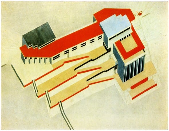 Le idee alla base del Proun si tramutano perennemente nella necessità di essere rielaborate in disegni, schizzi e progetti per l’architettura: grattacieli orizzontali, interni per Padiglioni di Fiere, condomini. “Il Proun – scrive El Lissitzky- inizia come una superficie piana, si trasforma in modello dello spazio tridimensionale e prosegue con la costruzione di tutti gli oggetti del vivere quotidiano”.
