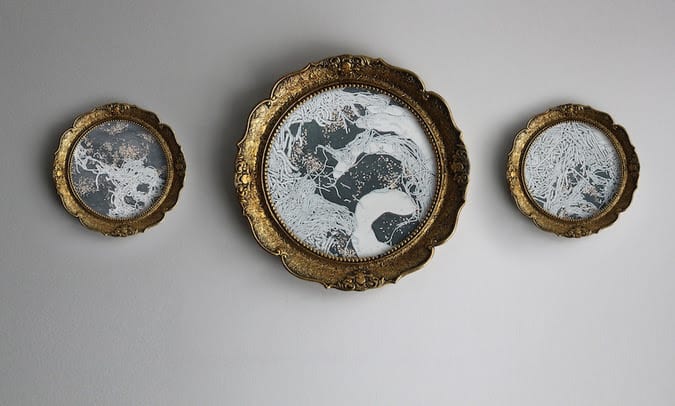 Spiega così la sua opera Ljubica Jocic-Knezevic: “Io considero i miei lavori in contrapposizione agli schermi piatti moderni e ai cartelloni della comunicazione di massa. La loro creazione porta un valore nuovo, una combinazione di mattonelle e fili intrecciati di porcellana, esponendo limitati elementi di design e di classico caldo, utilizzo una cornice dorata barocca per generare il dramma, la tensione e il contrasto. Il conflitto e la fusione di due materiali opposti in un differente spazio e tempo infondono una nuova vita nel lavoro e creano un significato e un messaggio universali.”