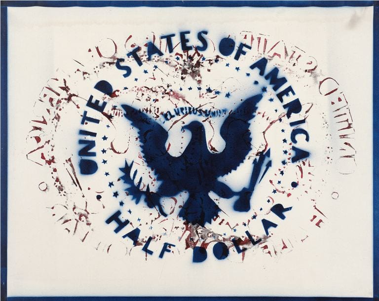 smalto spruzzato su tela cm. 80×100, firma al retro, opera registrata presso l’Archivio Franco Angeli per la monografia “10 mercanti un artista” come da dichiarazione a cura di Angiolino Calestani su foto, opera priva di cornice.
