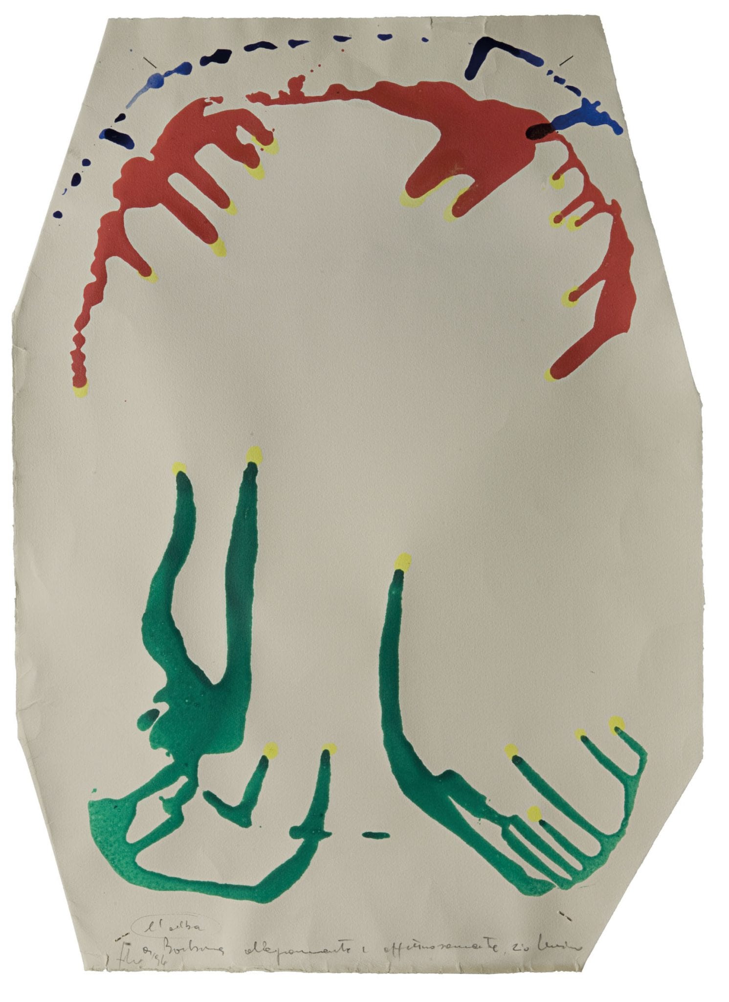 Lavori realizzati in più di quarant’anni che presentano segni autonomi, esercizi di segni che Fabro realizzava e regalava ad amici e parenti. E infatti è proprio la generosità di Fabro a fornire una delle chiavi di lettura dei disegni in mostra, che in alcuni casi appartengono a privati che li hanno ricevuti in dono dall’artista – come Cantare cantando (1994) e Concetto Spaziale (Descrizione) (1967), che riporta sul retro “buon ‘68. Luciano”: un dono augurale per l’anno nuovo. Sono opere che parlano di rapporti umani, di amicizia, di etica, di noi e dell’altro, perché – come afferma Giacinto Di Pietrantonio nel catalogo della mostra – ‘in Fabro anche il privato appartiene alla sfera pubblica’.