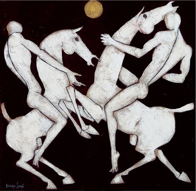 tecnica mista su tela cm. 70×100, firma, titolo e anno al retro, dichiarazione d’autenticità dell’artista su foto, opera priva di cornice.