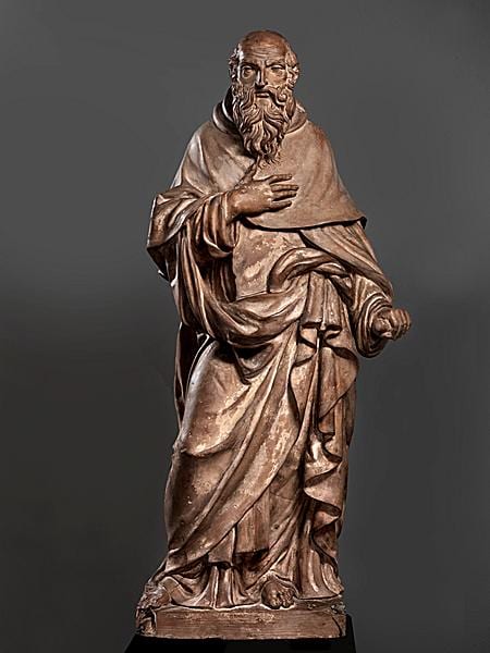 In spite of the absence of any direct documentary evidence, it is likely that Baccio was apprenticed in a workshop which brought him into direct contact with the young artists studying in the Garden of San Marco under the aegis of Lorenzo the Magnificent. Furthermore, it is likely that his master was Benedetto di Maiano. From Benedetto he likely acquired his technical skill that allowed him to work in all sculptural media. The influence of Maiano can be seen in this Saint Anthony Abbot despite having been shaped by Baccio nearly twenty years after Benedetto di Maiano’s death.