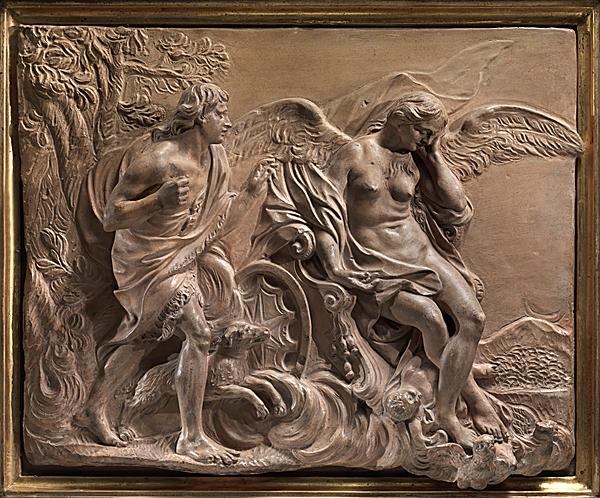 This terracotta is the only existing model by Giovanni Casini, a pupil of Giovan Battista Foggini, for one of six bronze reliefs representing the Hours of the Day and of the Night. Interesting, these were cast and chased by Pietro Cipriani, a pupil of Foggini’s rival, Massimiliano Soldani. The attribution is confirmed by an 18th-century inventory of wax models for Doccia porcelain, which was published by Klaus Lankheit in 1982: it includes a relief of the same composition, preserved in the Museo Richard-Ginori in Sesto Fiorentino near Florence. Casini, who was also a painter, was praised as an excellent modeller by his contemporary Francesco Maria Niccolò Gabburi, a distinguished writer and art collector. The freshness of Casini’s modelling has been replaced in Cipriani’s bronzes by an exquisite finish. The series is important for its rare subject that is inspired by Michelangelo’s famous Hours of the Day (Florence, San Lorenzo, Medici Chapel). Literature K. Lankheit, Die Modellsammlung der Porzellanmanifaktur Doccia, Munich 1982, p. 139, no. 40:115, fig. 207