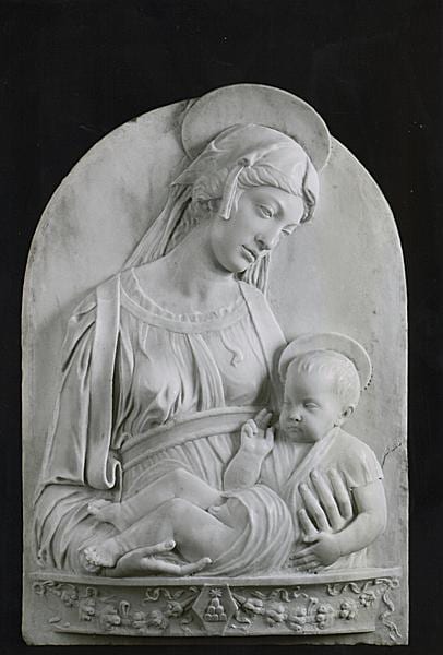 White marble relief from a lost model by Donatello (the Madonna Piccolomini) 60.3 x 40.6 cm, 1465