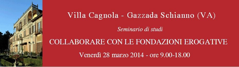 La filantropia in tempi di crisi: una tematica molto presente e con la quale si confrontano quotidianamente gli organizzatori di eventi culturali; un argomento che verrà analizzato in profondità nel corso di una prestigiosa giornata di studi patrocinata dalla Fondazione del Varesotto Onlus, in programma a Villa Cagnola a Gazzada Schianno (VA), il prossimo 28 marzo 2014, dal titolo Collaborare con le fondazioni erogative.
