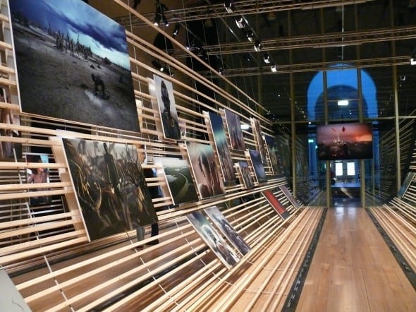Le 200 grandi foto, dispiegate lungo il suggestivo allestimento, sono articolate in 7 sezioni. Del Sahara, meta del suo primo viaggio nel 1972, colpiscono le incisioni rupestri di 8.000 anni fa che testimoniano come il deserto fosse un’area umida. Passerete davanti ai nomadi tuareg algerini, al Fezzan libico per fermarvi di fronte al primo piano di uno dei personaggi più regali mai visti: Un capo tribù berbero, da far dimenticare Omar Sharif.