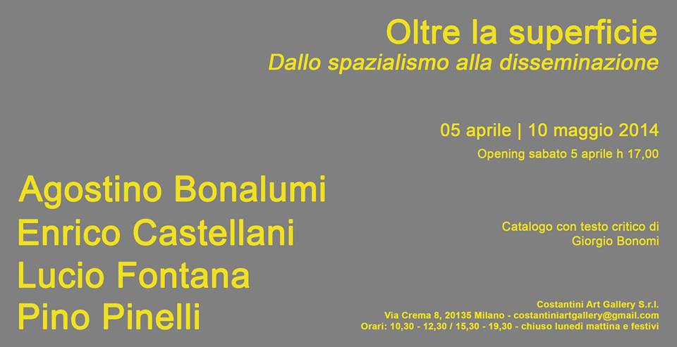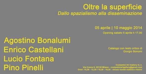 Inaugurerà il prossimo 5 Aprile presso la Costantini Art Gallery la mostra “Oltre la superficie. Dallo Spazialismo alla disseminazione”. L’esposizione presenterà un percorso che ha caratterizzato la storia dell’Arte non solo Nazionale, ma di rilevanza, indiscutibilmente, Internazionale. In esposizione opere primarie di Lucio Fontana, Enrico Castellani, Agostino Bonalumi, e Pino Pinelli, a rappresentanza di un periodo dell’Arte Moderna e Contemporanea che, partendo dal caposcuola Fontana, giunge fino a Pinelli, storico-contemporaneo dell’attuale ricerca basata, principalmente, sulla disseminazione aniconica; dal precursore della percezione, passando attraverso forme d’arte minimaliste a rappresentanza di una divulgazione segnica e materiale contenuta all’interno della struttura, sfociando infine in una disseminazione reale e priva di costrizioni. Un omaggio al precursore della percezione che, grazie alla sua ricerca spaziale, è stato autore e fautore di tutte le successive e consequenziali ricerche artistiche contemporanee.