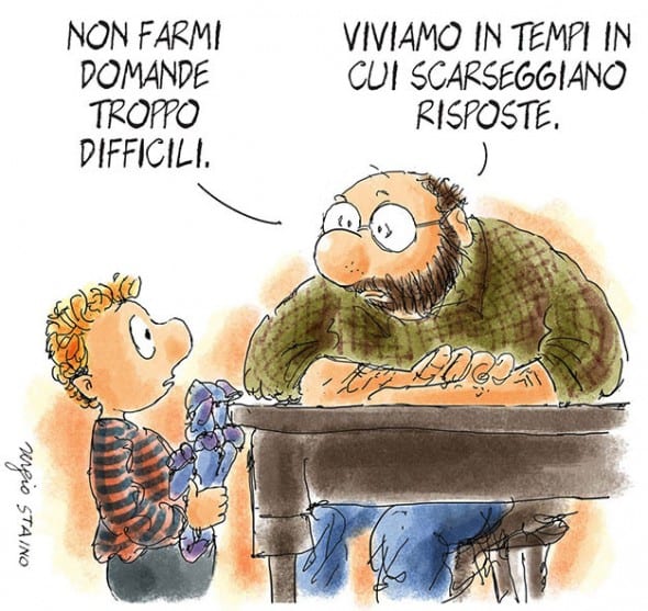“Sembra quasi un destino, e se lo è, è un bel destino, che uno nato in provincia di Siena e per la precisione a Piancastagnaio sull’ Amiata, arrivi in età avanzata a vedersi consacrato in una bella mostra nel proprio capoluogo. Già questo mi rende particolarmente felice ed emozionato, spingendomi nella ricerca di un percorso e di un senso a questa mostra, che vada al di là di una normale rassegna antologica e retrospettiva – ha commentato Staino– La realtà è che vorrei tanto che l’aspetto più importante di questa esposizione non fosse il retrospettivo ma alcuni piccoli germi di futuro, germi di futuro messi a disposizione dalle attuali tecnologie”.