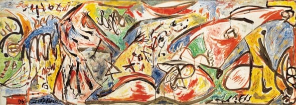 In altre parole, Pollock introdusse un modo totalmente nuovo di dipingere, partendo dalla profonda comprensione della grande personalità artistica di Michelangelo e della sublime tragica dimensione della sua opera. Oltrepassando l’uso del quadro verticale posto sul cavalletto, egli stendeva la tela orizzontalmente sul pavimento per dipingerla su tutti i lati. Con questo procedimento Pollock arrivò a sviluppare la tecnica del dripping, in poche parole facendo sgocciolare il colore sulla superficie direttamente dai tubetti o dai contenitori e senza far uso del pennello. Tecnica definita action painting (pittura d’azione) – propria dell’espressionismo astratto – da Harold Rosemberg nel 1952 per descrivere l’urgenza dell’atto creativo del pittore coinvolto fisicamente e psicologicamente nell’azione del dipingere, talvolta con veemenza, con furore, come in una lotta, in un corpo a corpo con la tela, diventata nell’agone una vera e propria arena L’esito di questa ‘performance’ era rivolta al fatto che l’opera enfatizzasse l’atto generativo della pittura in assenza di un disegno o schematismo preliminare, perché arte e pittura forssero come originata in se stesse e per se stesse, senza mai perdere il controllo dei mezzi, quello della risoluzione durante il susseguirsi dell’action.