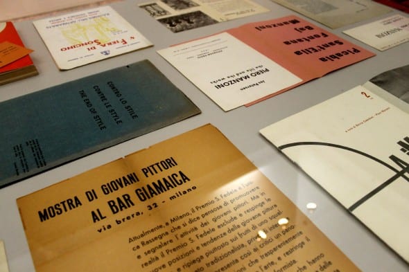 Fondamentali. In questo catalogo di questa mostra c’è un saggio di Gaspare Luigi Marcone che insiste proprio su questo e dimostra come la sua formazione filosofica, per quel poco di università che ha fatto, sia stata assolutamente fondamentale. Non dimentichiamo che la pratica di Manzoni è sempre pensiero intorno all’arte, pochissima pratica. Il suo rapporto con la manualità è assolutamente interessante però è fondamentale il pensiero intorno all’arte e la filosofia, lo studio di filosofia che ha fatto, è veramente importante.