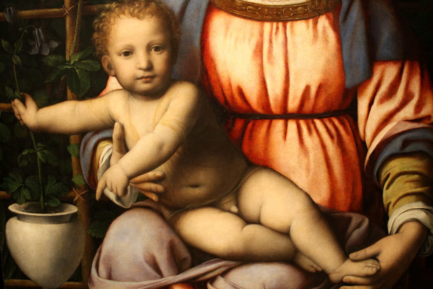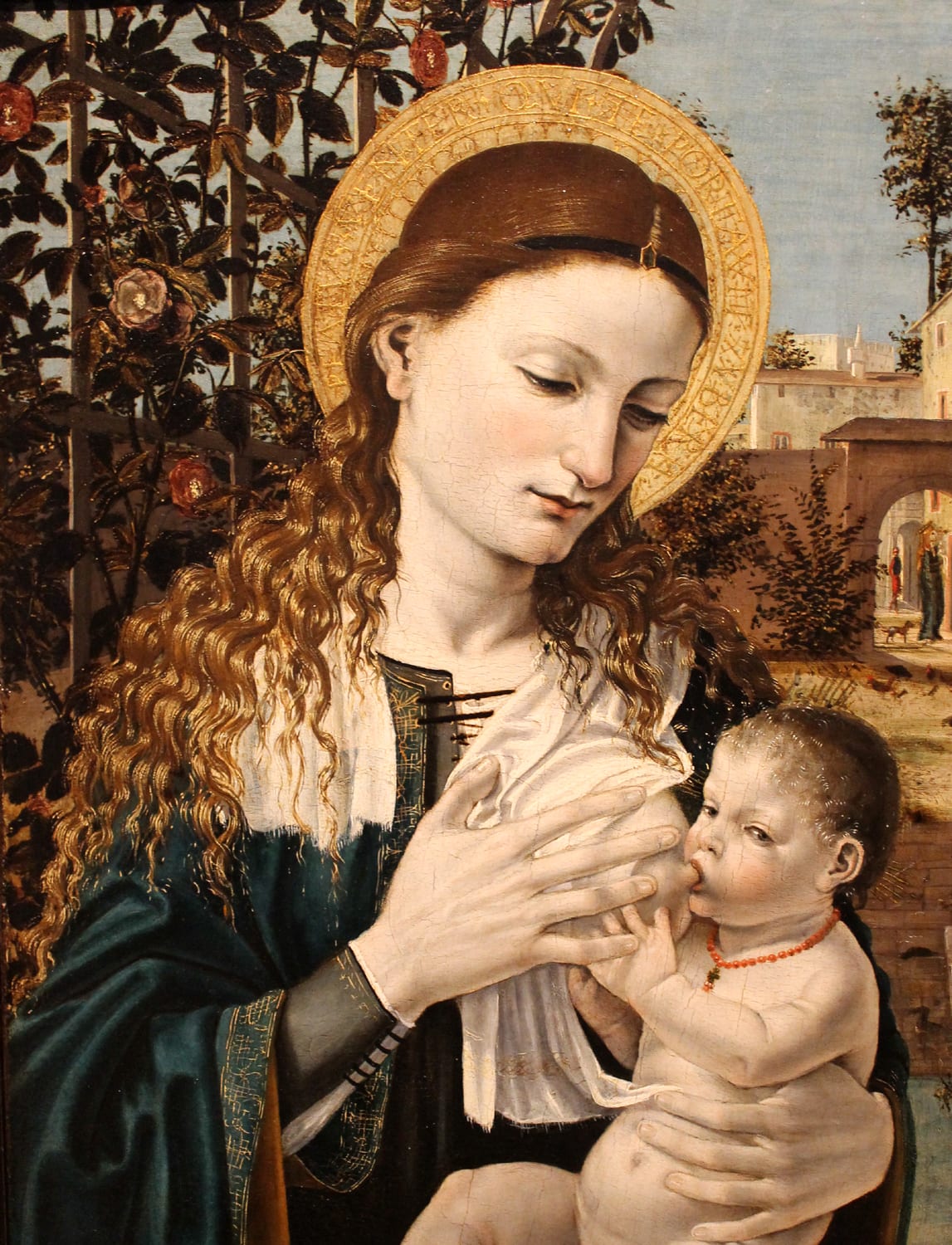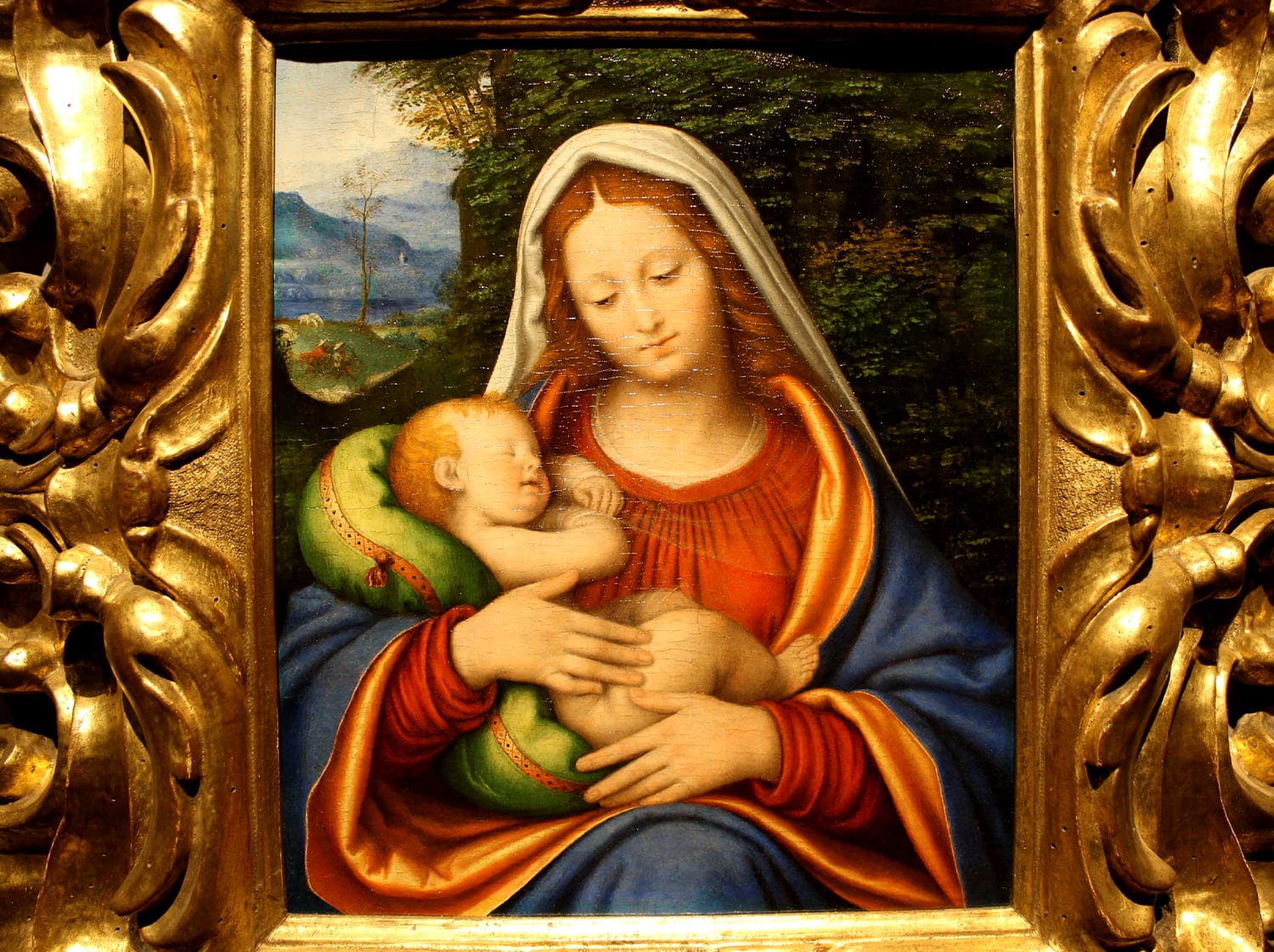 Grazia, posa e sguardi non cambiano. Stesse delicatezze che si fissano intorno alla metà del secondo decennio del Cinquecento (in meravigliosa sequenza: Susanna e i Vecchioni, 1515, Madonna del Roseto, 1516, Madonna con il Bambino, 1517) quando Bernardino “assesta il suo stile” liquidando “le inquietudini espressive che ne hanno caratterizzato gli esordi”, evitando le bizzarrie del Bramantino e accompagnando soggetti raffaelleschi a paesaggi lombardi.