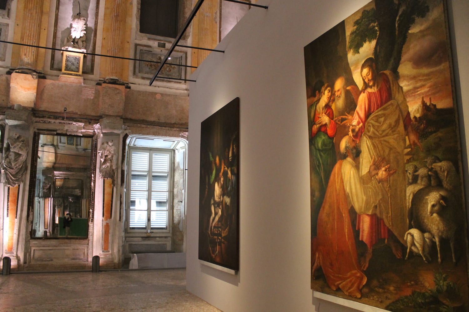 Le decorazioni sacro-profane della Pelucca, le lunette affrescate con 14 profili Sforza della Casa degli Atellani e i Santi affrescati “strappati” da Santa Marta. E’ un Bernardino Luini (1480-1532) al completo quello di Palazzo Reale a Milano che, anzi, comincia 25 anni prima la sua prima Madonna (di Esztergom, 1500) con quella del “patriarca” Foppa del 1475, a tu per tu con la bellezza lunare della Maria del Bergognone (1495) quando ancora Leonardo non era sul pennello di tutti, per finire tra le pale manieriste dei figli circondate dalle Cariatidi bombardate della Sala che porta il loro nome, “drammaturgicamente adatta a segnare la discontinuità di generazione tra Bernardino e i suoi figli”.