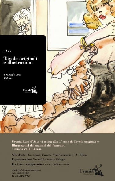 ”Urania Casa d’Aste”, specializzata in tavole e illustrazioni originali dei maestri del fumetto, propone per il 4 maggio la sua prima asta (presso il Museo del Fumetto – Spazio WOW di Milano) di ”Tavole e illustrazioni originali”.
