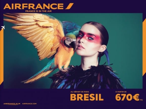 Scatti di modelle sinuose e colori vivaci, ci troviamo sul set fotografico di una rivista di moda? Non per l’esattezza. La compagnia aerea francese Air France ha ingaggiato due fotografi argentini “Sofia&Mauro” che si sono dati da fare per stravolgere l’advertising campaign 2014. A ogni paese corrisponde uno scatto caratteristico del posto. Pose plastiche e da diva come sulle riviste di moda, con la differenza che queste inneggiano il nuovo slogan della compagnia che dal 1993 non è mai stato cambiato: “Faire du ciel le plus bel endroit de la terre” e ora nel 2014 diventa un romanticissimo “Air France is in the air”, riprendendo il titolo della canzone di Paul Young “Love is in the air”.