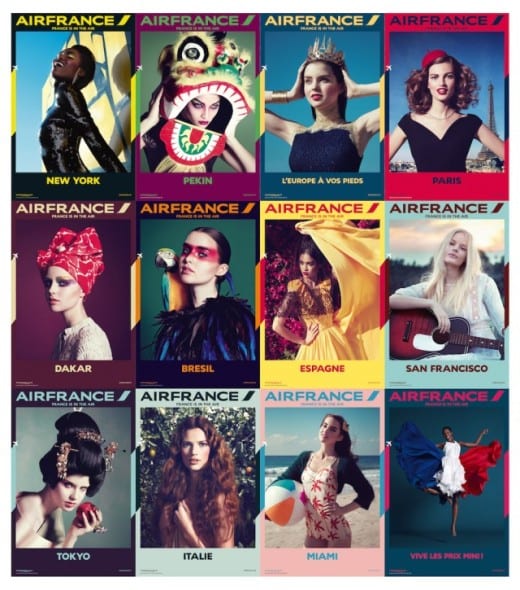 Scatti di modelle sinuose e colori vivaci, ci troviamo sul set fotografico di una rivista di moda? Non per l’esattezza. La compagnia aerea francese Air France ha ingaggiato due fotografi argentini “Sofia&Mauro” che si sono dati da fare per stravolgere l’advertising campaign 2014. A ogni paese corrisponde uno scatto caratteristico del posto. Pose plastiche e da diva come sulle riviste di moda, con la differenza che queste inneggiano il nuovo slogan della compagnia che dal 1993 non è mai stato cambiato: “Faire du ciel le plus bel endroit de la terre” e ora nel 2014 diventa un romanticissimo “Air France is in the air”, riprendendo il titolo della canzone di Paul Young “Love is in the air”.