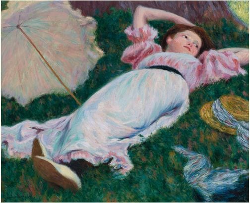 Pierre-Auguste Renoir (1841-1919) Femme à l’ombrelle oil on canvas 18 1/8 x 15 1/8 in. (46 x 38.3 cm.) ESTIMATE $3,000,000 – $5,000,000
