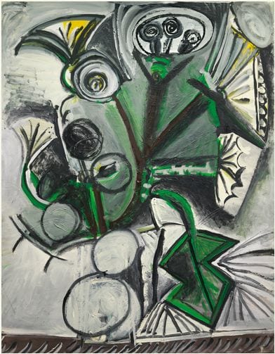 PROPERTY FROM THE ESTATE OF JAN KRUGIER PABLO PICASSO 1881 – 1973 BOUQUET Dated 7.11.69 II (on the reverse) Oil on canvas 57 1/2 by 44 7/8 in. 146 by 114 cm Painted on November 7, 1969. Estimate 2,500,000 — 3,500,000 USD