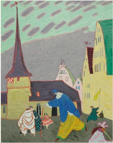 PROPERTY OF A NEW YORK PRIVATE COLLECTOR LYONEL FEININGER 1871 – 1956 KARNEVAL IN GELMERODA II Signed Feininger (lower left) Oil on canvas 27 1/4 by 21 1/2 in. 69.2 by 54.6 cm Painted in 1908. Estimate 4,000,000 — 6,000,000 USD