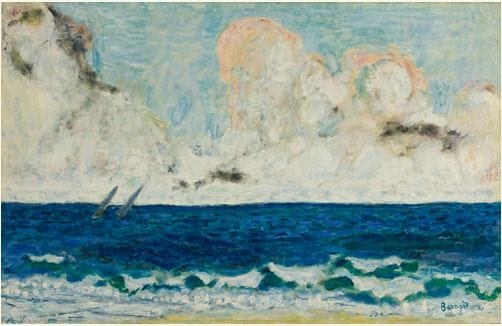PROPERTY FROM A DISTINGUISHED COLLECTION PIERRE BONNARD 1867 – 1947 PLEINE MER Stamped with the signature (lower right) Oil on canvas 18 3/4 by 28 3/4 in. 47.7 by 73 cm Painted circa 1936. Estimate 700,000 — 1,000,000 USD