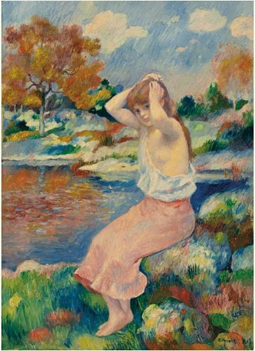PROPERTY FROM A DISTINGUISHED JAPANESE PRIVATE COLLECTION PIERRE-AUGUSTE RENOIR 1841-1919 LA TOILETTE Signed Renoir and dated 85 (lower right) Oil on canvas 20 1/8 by 14 5/8 in. 51 by 37 cm Painted in 1885. Estimate 4,000,000 — 6,000,000 USD